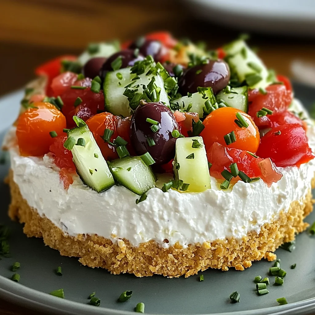 Cheesecake salé à la grecque est une entrée originale et savoureuse qui ravira vos invités à toutes les occasions. Ce plat méditerranéen, frais et coloré, allie le goût crémeux du cream cheese et de la feta avec des légumes croquants. Parfait pour un apéritif ou un repas léger, ce cheesecake salé s’adapte à toutes vos envies. Sa préparation rapide en fait un choix idéal pour les soirées entre amis ou les pique-niques d’été.